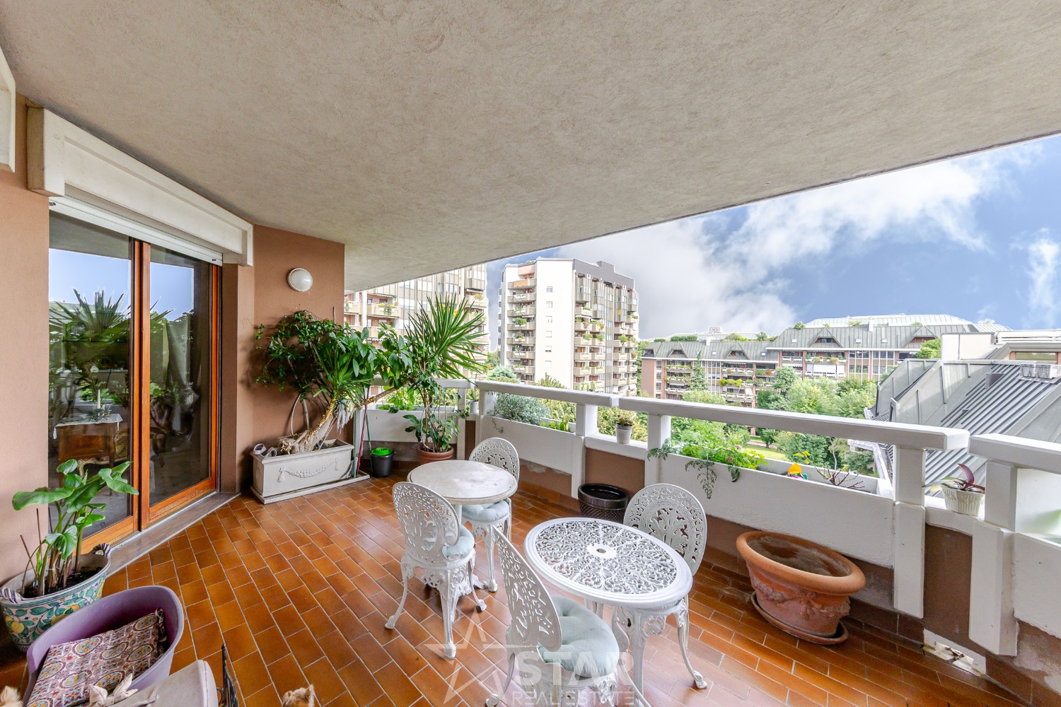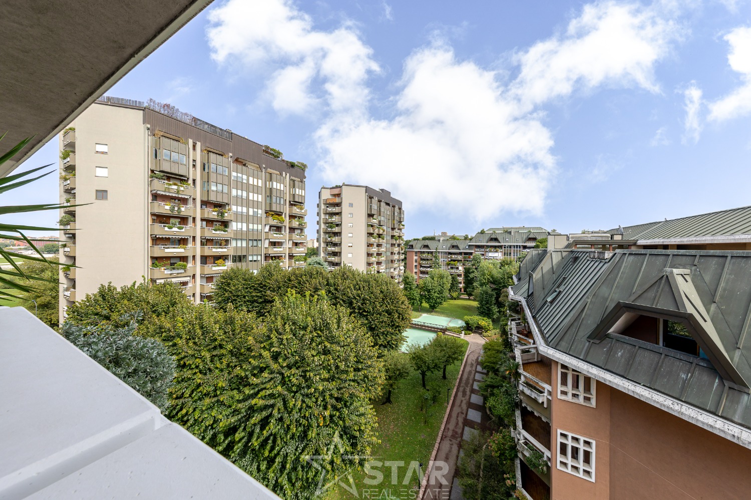 All’interno della residenza Auriga di via Ippodromo – prestigioso complesso dotato di portineria attiva 24 ore su 24 e ampio parco condominiale – proponiamo in vendita un esclusivo attico con piscina, finiture di pregio e tripla esposizione. Il complesso si trova tra il Get Fit, le nuove Terme De Montel e il capolinea della MM5 San Siro Stadio, nel cuore dell’oasi verde di San Siro, oggi protagonista di un’importante opera di rigenerazione urbana. L’attico, di circa 450 mq distribuiti su tre livelli, dispone di un doppio ingresso al sesto piano e accessi indipendenti anche al settimo ed ottavo piano. I pavimenti del sesto e del settimo piano sono interamente rivestiti in marmi pregiati. Sesto piano L’ingresso principale introduce in un raffinato salone triplo affacciato, ad est, su un’ampia loggia arredata e piantumata. La zona conversazione, impreziosita da uno splendido camino d’epoca, e la zona pranzo sono elegantemente separate da uno scenografico scalone in marmo di Carrara che conduce al livello superiore. L’ingresso di servizio si apre su una seconda loggia, anch’essa arredata e piantumata, esposta a ovest e collegata alla cucina e al salone attraverso un ampio disimpegno attrezzato. La cucina, oltre ad affacciarsi sul disimpegno della zona giorno, accede direttamente alla loggia e a una lavanderia, che comunica anche con il disimpegno della zona notte. La zona notte si articola in tre disimpegni che conducono a: • due ampie camere matrimoniali, ciascuna con bagno privato, cabina armadio o locale guardaroba, boiserie, tappezzerie di pregio e affaccio su loggia • una cameretta • un bagno di servizio Settimo piano Il piano superiore accoglie un ampio soppalco affacciato sul salone sottostante e destinato a zona studio, oltre a un locale di 30 mq posto sotto la piscina. Questo livello dispone di un ingresso autonomo dal pianerottolo del settimo piano ed è collegato all’ottavo piano tramite una scala di servizio. Ottavo piano L’ultimo livello ospita una splendida piscina con solarium arredato e piantumato, dotato di doccia esterna, un locale di servizio con zona cottura e accesso autonomo dal pianerottolo. La vista si apre spettacolare sui parchi e sull’intera zona ovest di Milano. Il riscaldamento è centralizzato, con prossimo passaggio al teleriscaldamento. Sono presenti impianto di climatizzazione con split e sistema di allarme con telecamere di sorveglianza anche sulla terrazza. La proprietà è completata da due box doppi al piano S1, serviti dall’ascensore condominiale