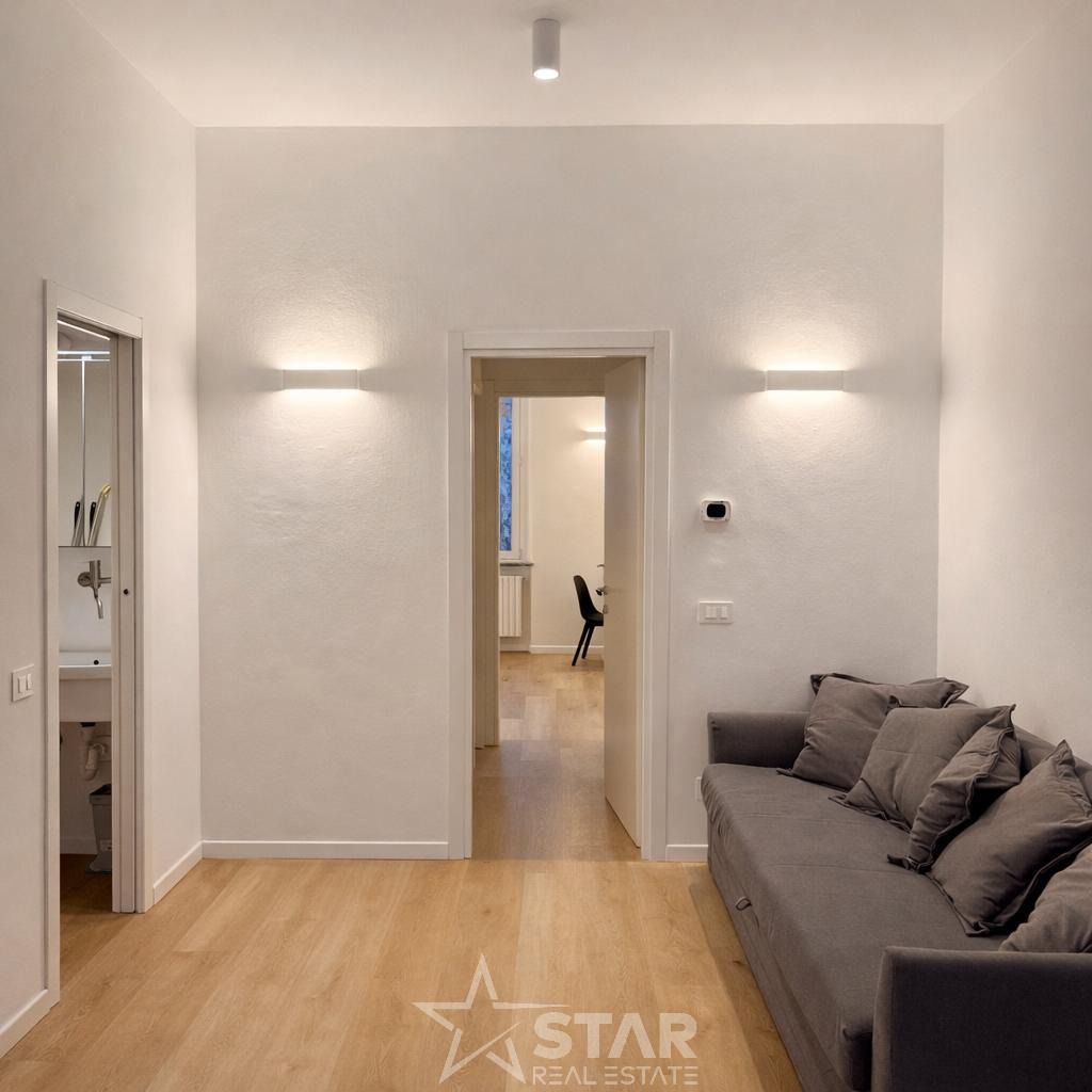 Bilocale ristrutturato a nuovo e mai abitato – 56 mq – Corso Vercelli / Via Salutati In stabile riqualificato e videosorvegliato, proponiamo in locazione bilocale di 56 mq completamente ristrutturato a nuovo e mai abitato, con impianti nuovi e dotazioni moderne. L’appartamento è composto da soggiorno con cucina a induzione completamente attrezzata (lavastoviglie, microonde, cappa con sfogo esterno), divano letto per ospiti, camera matrimoniale, disimpegno, bagno e vano lavanderia/caldaia con lavatrice-asciugatrice e secondo lavabo. Dotato di riscaldamento e aria condizionata entrambe con controllo da remoto, porta blindata e finiture moderne. Completa la proprietà una cantina spaziosa. Situato in zona residenziale tranquilla e ben servita, a pochi passi da Corso Vercelli e dalla MM1 Pagano, in uno dei quartieri più richiesti di Milano. Canone mensile: € 1.600,00 Spese condominiali: € 140 / mese Disponibilità: libero subito